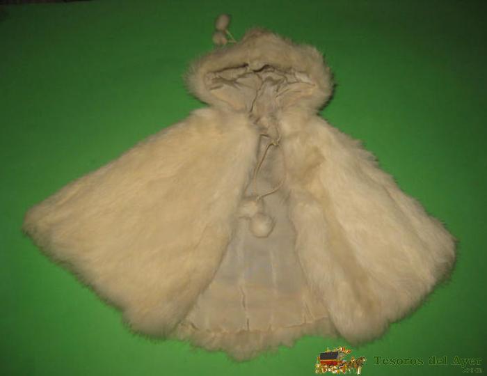 CAPA DE PIEL CON CAPUCHA Y BORLONES DE LA MUÑECA GISELA