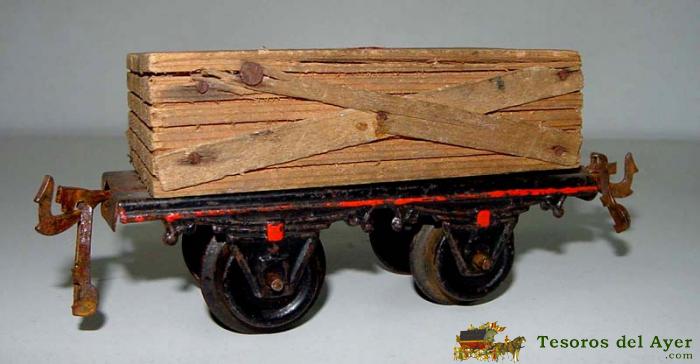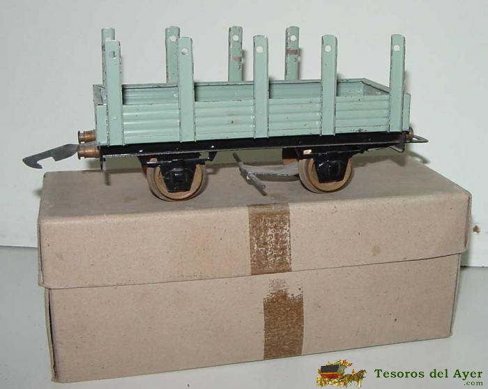ANTIGUO VAGON DE CARGA DE MANAMO ESCALA 0 - MIDE 19 CMS. DE LONGITUD . TAL COMO SE VE EN LAS FOTOGRAFIAS.