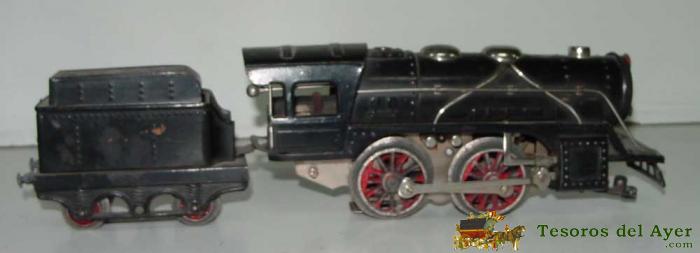 ANTIGUA LOCOMOTORA CON TENDER DE MARKLIN R890 ESCALA 0 - A CUERDA - AÑOS 30 - DE CHAPA LITOGRAFIADA . FUNCIONANDO PERFECTAMENTE - MARCHA DELANTE Y ATRAS - MUY BUEN ESTADO DE CONSERVACION - PEQUEÑO DEFECTO EN UNA DE LAS 4 RUEDAS TAL COMO SE VE EN LA FOTO