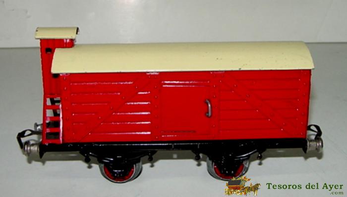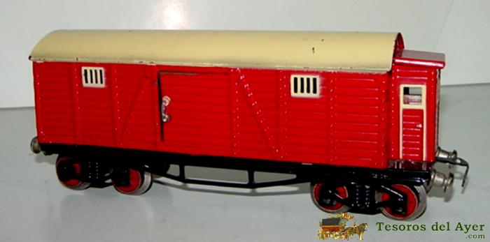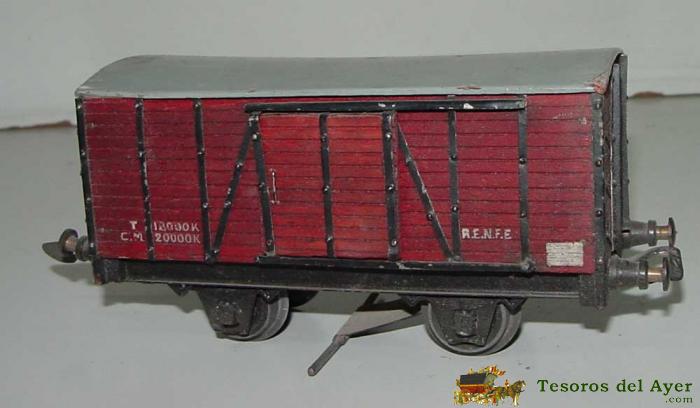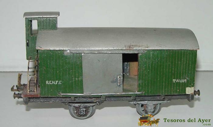 ANTIGUO VAGON DE ESCALA 0, DE CHAPA, DE LA MARCA RICO, AÑOS 50 - MIDE 22 CMS. MERCANCIAS CERRADO, CON GARITA - EN MUY BUEN ESTADO DE CONSERVACION, COMPLETAMENTE ORIGINAL - VER TODAS LAS FOTOGRAFIAS QUE HEMOS PUESTO - MUY DIFICIL ENCONTRAR OTRO ASI.