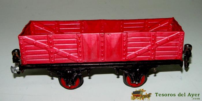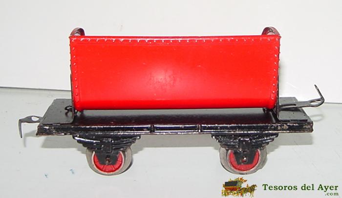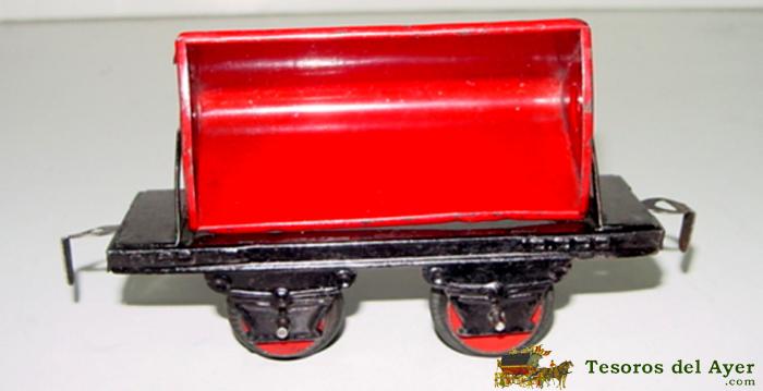 ANTIGUO VAGON VOLQUETE DE LA MARCA RICO - DE HOJALATA LITOGRAFIADA - ESCALA 0 - MIDE APROXIMADAMENTE 13 CMS. - ESTADO TAL Y COMO SE VE EN LAS FOTOGRAFIAS.