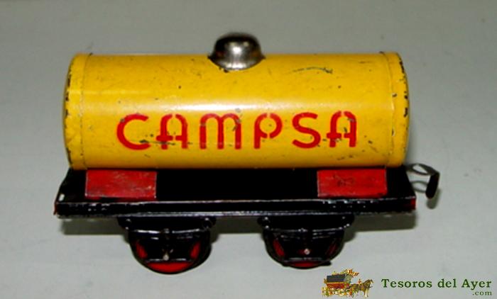 ANTIGUO VAGON CAMPSA DE LA MARCA RICO - DE HOJALATA LITOGRAFIADA - ESCALA 0 - MIDE APROXIMADAMENTE 13 CMS. - ESTADO TAL Y COMO SE VE EN LAS FOTOGRAFIAS.