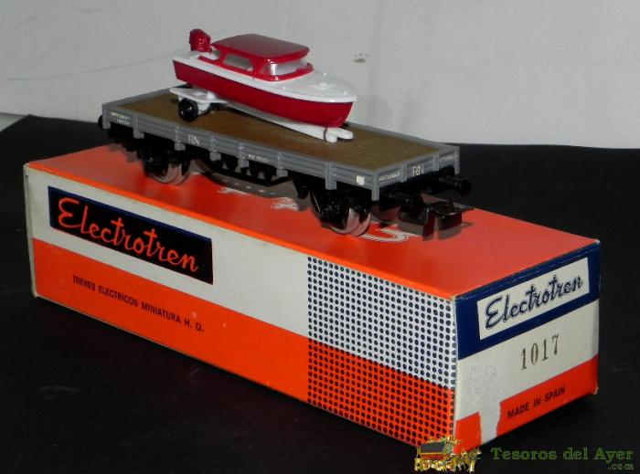 ANTIGUO VAGON PLATAFORMA CON MOTORA DE ELECTROTREN, REFERENCIA 1017. VAGÓN PLATAFORMA CON MOTORA DE ELECTROTREN, CON SU CAJA ORIGINAL. NUEVO EN PERFECTO ESTADO.
