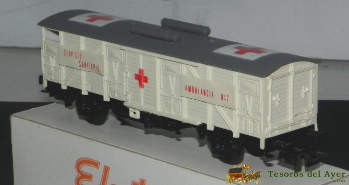 ANTIGUO VAGóN DE TREN ELECTROTREN - VAGóN AMBULANCIA SANITARIO REF. 1311, ELECTROTREN HO CON SU CAJA ORIGINAL. NUEVO EN BUEN ESTADO.