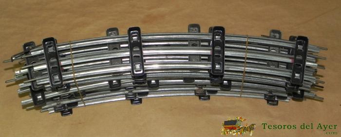 LOTE DE 14 VIAS CURVAS DE TREN, DE PAYA ESCALA 0, TODAS DE CHAPA - MIDEN 38 CMS. DE LONGITUD - CURVAS, RADIO LARGO.