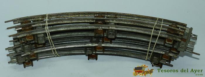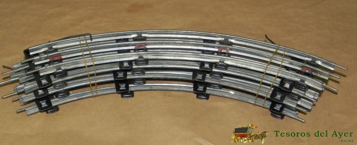 LOTE DE 7 VIAS CURVAS DE TREN, DE PAYA ESCALA 0, TODAS DE CHAPA - MIDEN 35 CMS. DE LONGITUD - CURVAS, RADIO CORTO.