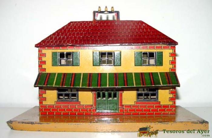 ANTIGUA ESTACION DE TREN DE PAYA ESCALA 0 DE HOJALATA LITOGRAFIADA - BUEN ESTADO - MIDE 23 X 16 X 12 CMS.