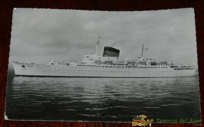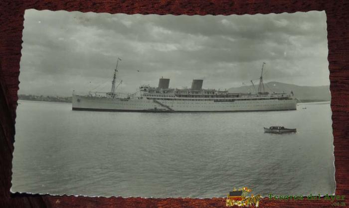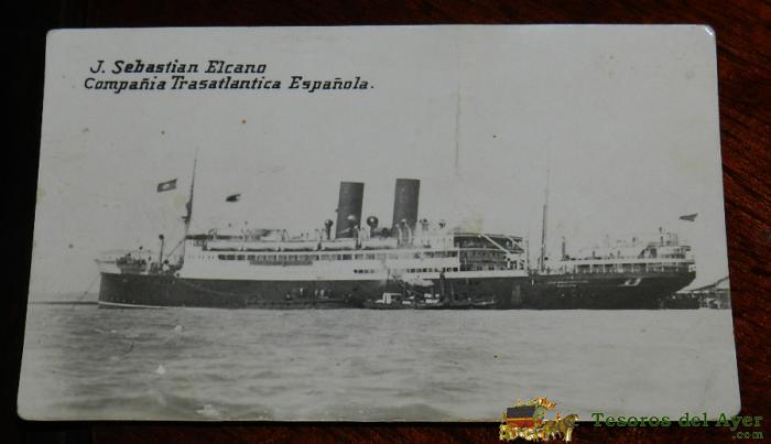 ANTIGUA FOTO POSTAL DEL BARCO JUAN SEBASTIAN ELCANO, COMPAÑIA TRASATLANTICA ESPAÑOLA. ED. ALFA. ESCRITA.