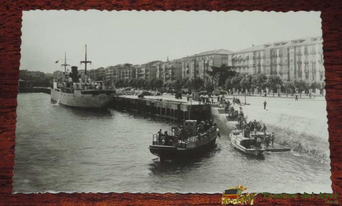 FOTO POSTAL DE SANTANDER, BAHIA, DESEMBARCADERO DE LAS LANCHAS DE PEDREÑA, AL FONDO PASEO DE PEREDA, ED. DOMINGUEZ 23, NO CIRCULADA.