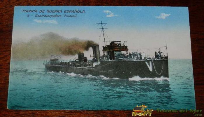 POSTAL DE BARCO. MARINA DE GUERRA ESPAñOLA. CONTRATORPEDERO VILLAMIL. N.8. ED. JVB. SERIE STANDARD.