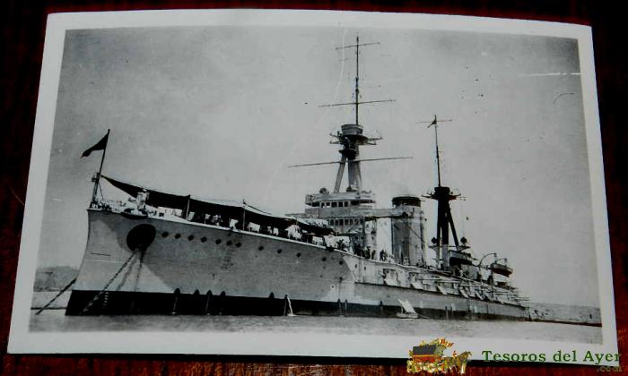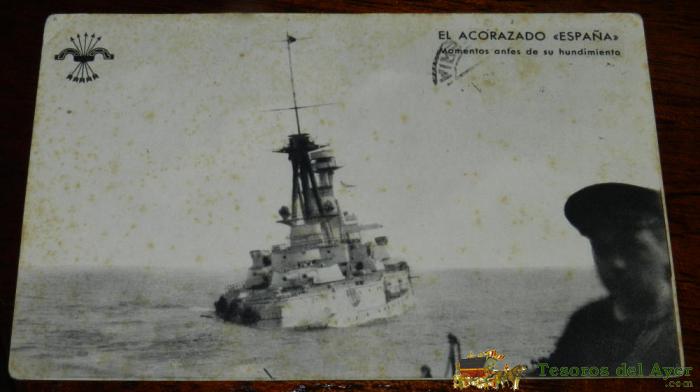 ANTIGUA POSTAL DEL BARCO EL ACORAZADO ESPAÑA, HUECOGRABADO ARTE, CIRCULADA.