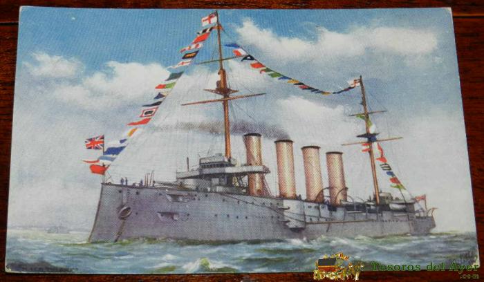 ANTIGUA POSTAL DEL BARCO INGLES DE GUERRA H.M.S. DRAKE, TUCKS POST CARD, SIN CIRCULAR