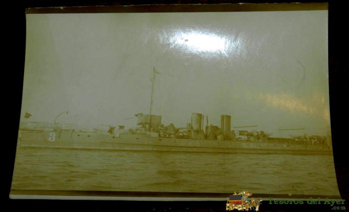 ANTIGUA FOTOGRAFIA DE TORPEDERO ESPAÑOL EN LISBOA, MIDE 13 X 9 CMS.