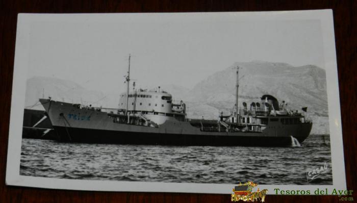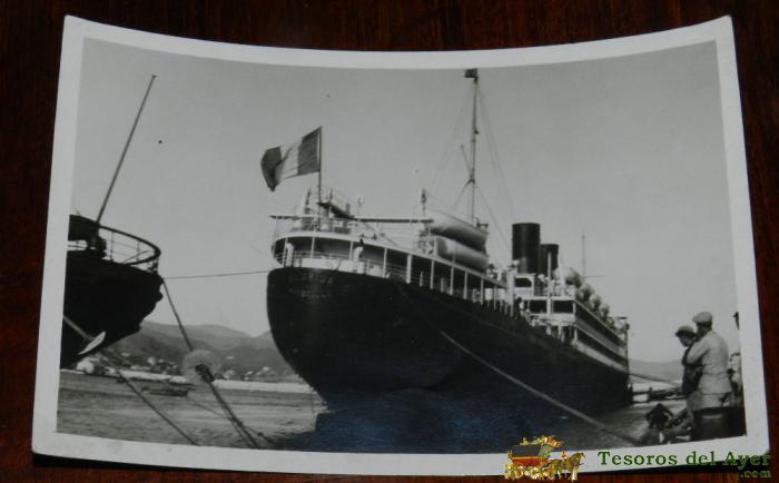 ANTIGUA FOTOGRAFIA DE CASAU, BARCO EN EL PUERTO DE CARTAGENA, TAMAÑO POSTAL.