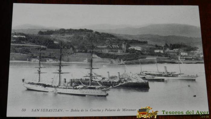 SAN SEBASTIAN (GUIPUZCOA): BAHIA DE LA CONCHA Y PALACIO DE MIRAMAR: TARJETA POSTAL 59 LL. S, SIN CIRCULAR