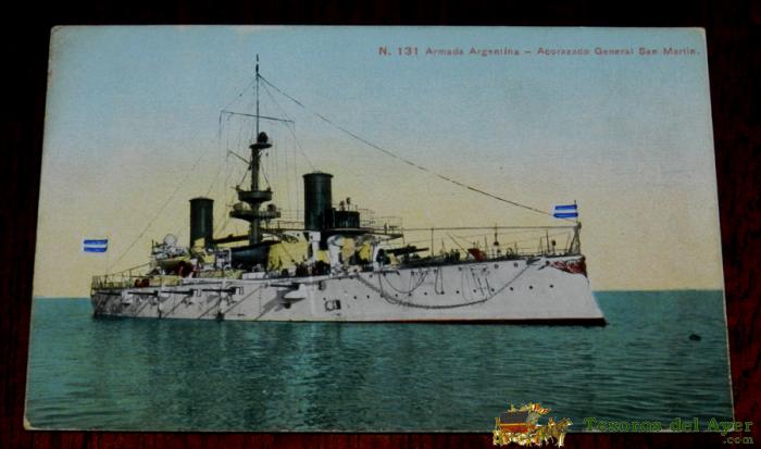 ANTIGUA POSTAL DEL ACORAZADO GENERAL SAN MARTIN, ARMADA ARGENTINA, EDICION Z. FUMAGALLI 131, SIN CIRCULAR