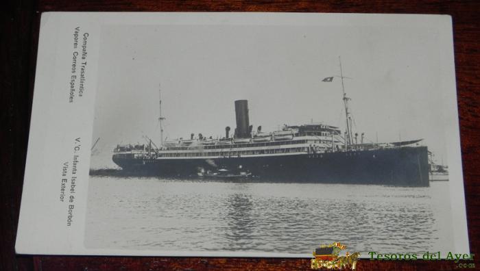 ANTIGUA FOTO POSTAL DE BARCO VAPOR CORREO INFANTA ISABEL DE BORBÓN - COMPAÑIA TRANSATLANTICA ESPAÑOLA - NO CIRCULADA.