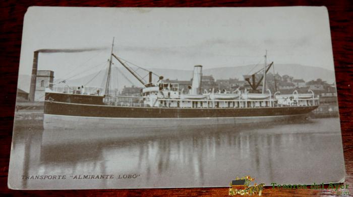 POSTAL MARíTIMA PATRIóTICA. ESPAñA. TRANSPORTE DE GUERRA ALMIRANTE LOBO, BARCO, NO CIRCULADA, ESCRITA EN 1916.
