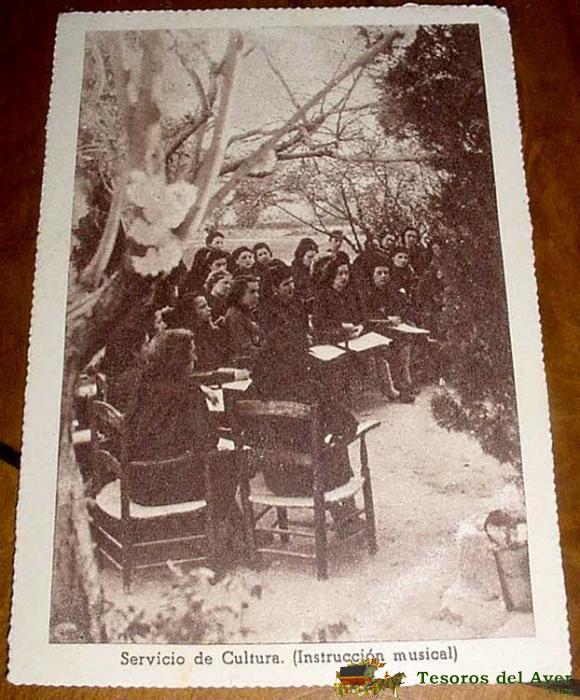 ANTIGUA POSTAL CON PUBLICIDAD DE LA SECCION FEMEMINA DE FALANGE ESPAÑOLA TRADICIONALISTA Y DE LAS JONS. SERVICIO DE CULTURA, INSTRUCCION MUSICAL - SIN CIRCULAR