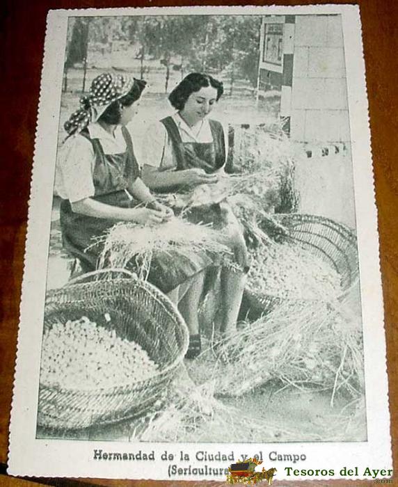 ANTIGUA POSTAL CON PUBLICIDAD DE LA SECCION FEMEMINA DE FALANGE ESPAÑOLA TRADICIONALISTA Y DE LAS JONS. HERMANDAD DE LA CIUDAD Y EL CAMPO, SERICULTURA - SIN CIRCULAR