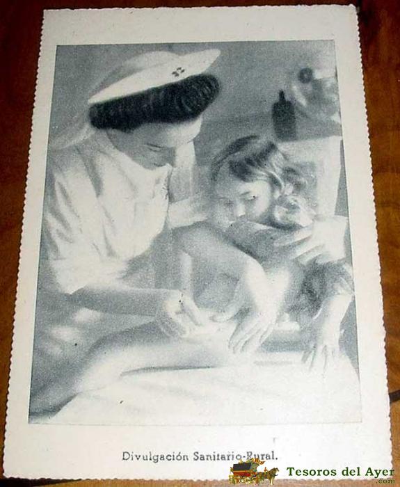 ANTIGUA POSTAL CON PUBLICIDAD DE LA SECCION FEMEMINA DE FALANGE ESPAÑOLA TRADICIONALISTA Y DE LAS JONS. DIVULGACION SANITARIO RURAL - SIN CIRCULAR