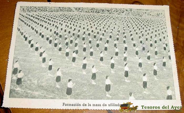 ANTIGUA POSTAL CON PUBLICIDAD DE LA SECCION FEMEMINA DE FALANGE ESPAÑOLA TRADICIONALISTA Y DE LAS JONS. - FORMACION DE LA MASA DE AFILIADAS - SIN CIRCULAR