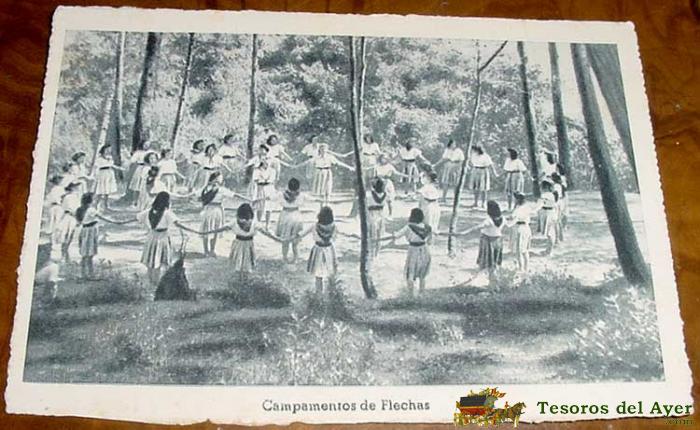 ANTIGUA POSTAL CON PUBLICIDAD DE LA SECCION FEMEMINA DE FALANGE ESPAÑOLA TRADICIONALISTA Y DE LAS JONS. - CAMPAMENTOS DE FLECHAS - SIN CIRCULAR