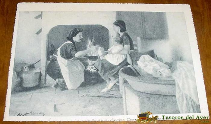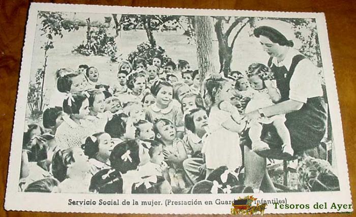 ANTIGUA POSTAL CON PUBLICIDAD DE LA SECCION FEMEMINA DE FALANGE ESPAÑOLA TRADICIONALISTA Y DE LAS JONS. - SERVICIO SOCIAL DE LA MUJER, PRETACION EN GUARDERIAS INFANTILES - SIN CIRCULAR