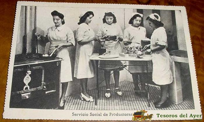 ANTIGUA POSTAL CON PUBLICIDAD DE LA SECCION FEMEMINA DE FALANGE ESPAÑOLA TRADICIONALISTA Y DE LAS JONS. - SERVICIO SOCIAL DE PRODUCTORAS - SIN CIRCULAR