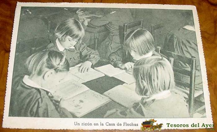 ANTIGUA POSTAL CON PUBLICIDAD DE LA SECCION FEMEMINA DE FALANGE ESPAÑOLA TRADICIONALISTA Y DE LAS JONS. - UN RINCON EN LA CASA DE FLECHAS - SIN CIRCULAR
