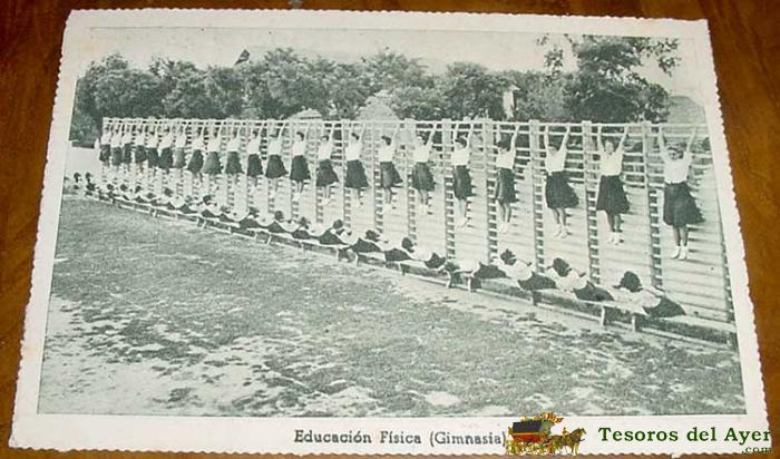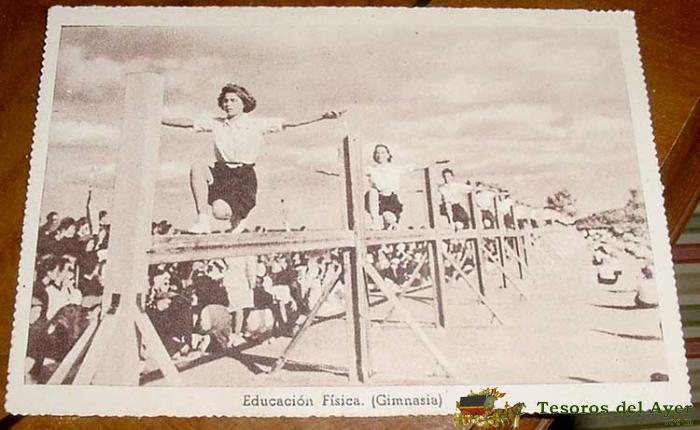 ANTIGUA POSTAL CON PUBLICIDAD DE LA SECCION FEMEMINA DE FALANGE ESPAÑOLA TRADICIONALISTA Y DE LAS JONS. - EDUCACION FISICA, GIMNASIA - SIN CIRCULAR