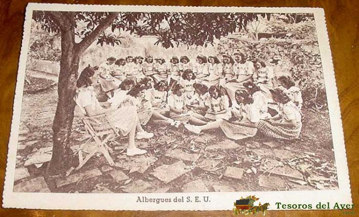 ANTIGUA POSTAL CON PUBLICIDAD DE LA SECCION FEMEMINA DE FALANGE ESPAÑOLA TRADICIONALISTA Y DE LAS JONS. - ALBERGUES DEL S.E.U.- SIN CIRCULAR