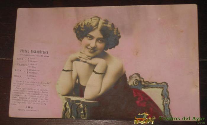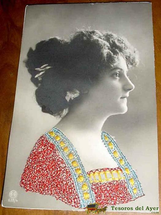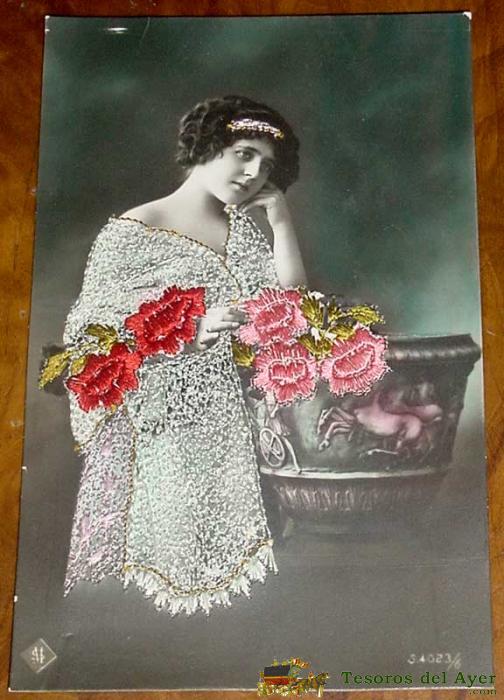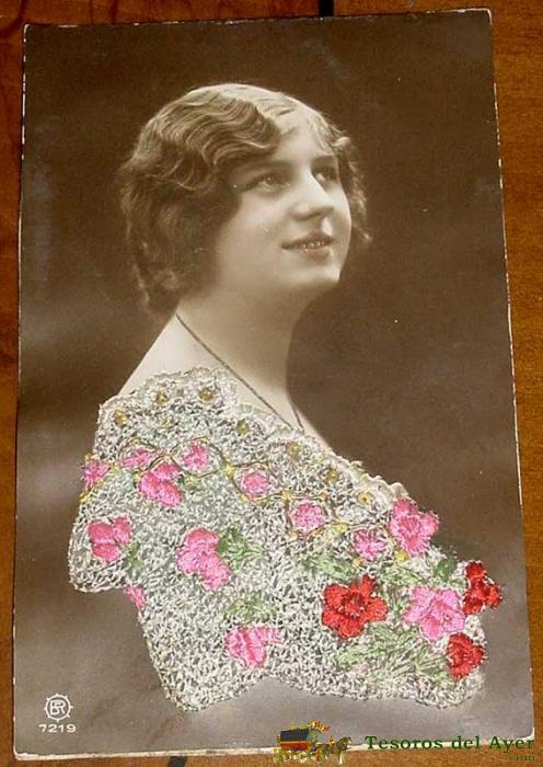 ANTIGUA FOTO POSTAL DE MUJER EN RELIEVE BORDADA - ESCRITA - AÑOS 20 - MUY BUEN ESTADO DE CONSERVACION