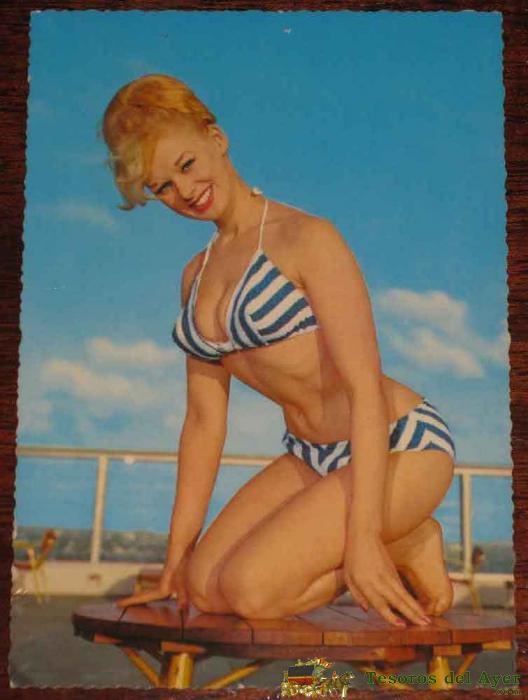 ANTIGUA FOTO POSTAL DE MUJER EN LA PLAYA - NO CIRCULADA.