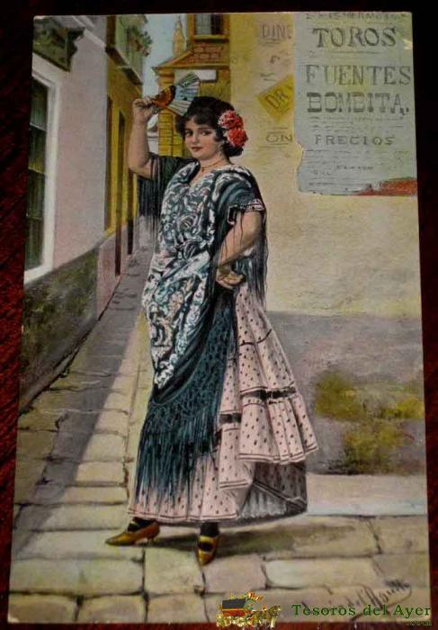 ANTIGUA POSTAL DE MUJER ANDALUZA - NO CIRCULADA - ILUSTRADA POR LUIS DEL AGUILA.