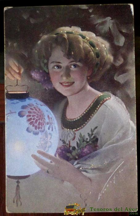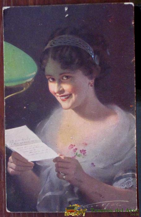 ANTIGUA POSTAL EN RELIEVE DE MUJER AÑOS 20 -. ESCRITA - EXCELENTE ESTADO DE CONSERVACION -