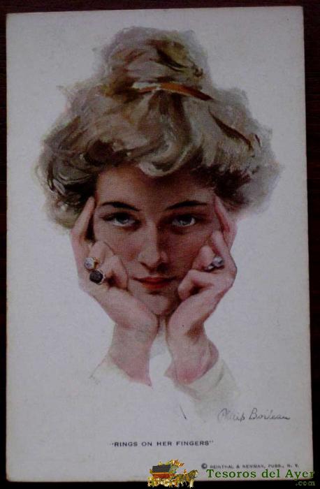 ANTIGUA POSTAL DE MUJER - RINGS ON HER FINGERS - NO CIRCULADA.
