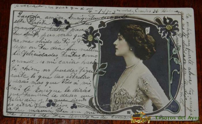 ANTIGUA POSTAL DE LINA CAVALIERI - ACTRIZ, MODERNISTA, CIRCULADA DESDE LA HABANA EN 1902.REUTLINGER
