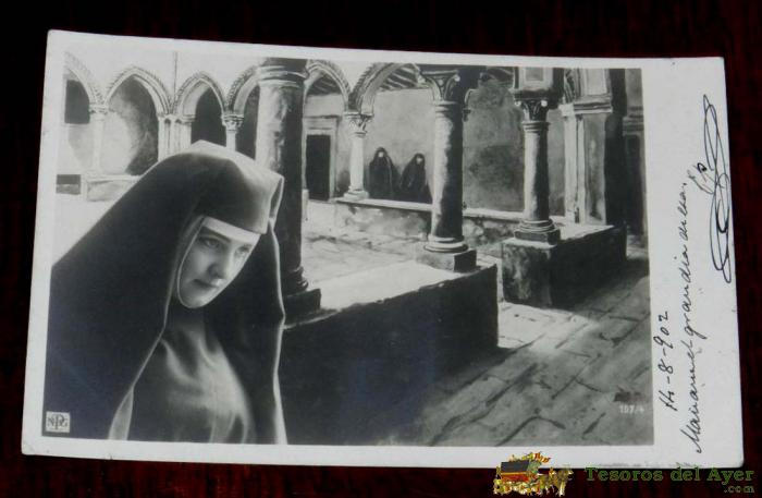 ANTIGUA FOTO POSTAL SURREALISTA DE MONJA, MUJER, NPG 107/4, MODERNISTA, ART NOUVEAU, CIRCULADA EN 1902, SIN DIVIDIR.