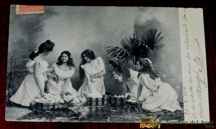 ANTIGUA POSTAL DE CHICAS VINTAGE ART NOUVEAU CLEMENT TOURNIER, SERIE 1120 CIRCULADA EN 1902 SIN DIVIDIR