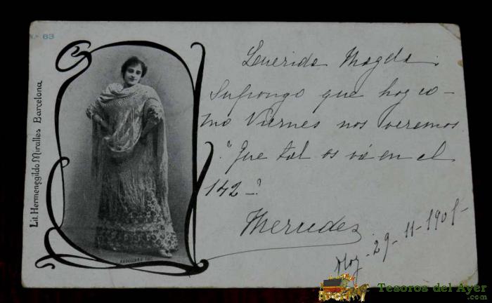 ANTIGUA POSTAL DE ARTISTA , AUDOUARD FOT., LIT. HERMENEGILDO MORALES, CIRCULADA EN 1901, Nº 63 CON SELLO EN AZUL DE LA ESTAFETA DEL SENADO. SIN DIVIDIR