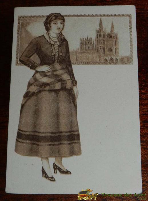 ANTIGUA POSTAL PUBLICIDAD, ASPIRINA BAYER, TRAJE REGIONAL MUJER DE BURGOS, MIDE 12 X 8 CMS.
