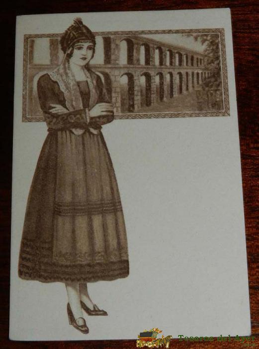 ANTIGUA POSTAL PUBLICIDAD, ASPIRINA BAYER, TRAJE REGIONAL MUJER DE SEGOVIA, SEGOVIANA, MIDE 12 X 8 CMS.