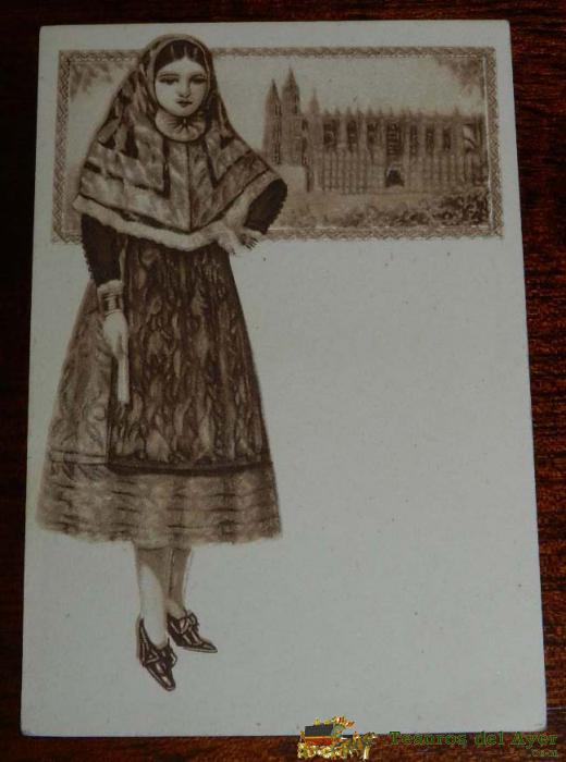 ANTIGUA POSTAL PUBLICIDAD, ASPIRINA BAYER, TRAJE REGIONAL MUJER DE PALMA DE MALLORCA, MIDE 12 X 8 CMS.