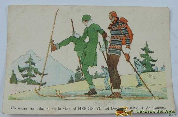 POSTAL PUBLICITARIA HEMOSTYL DEL DOCTOR ROUSSEL, DIBUJO ARTíSTICO DE MAGGIE SALZEDO. ED. CROMO - MADRID, NO CIRCULADA, ESCRITA.