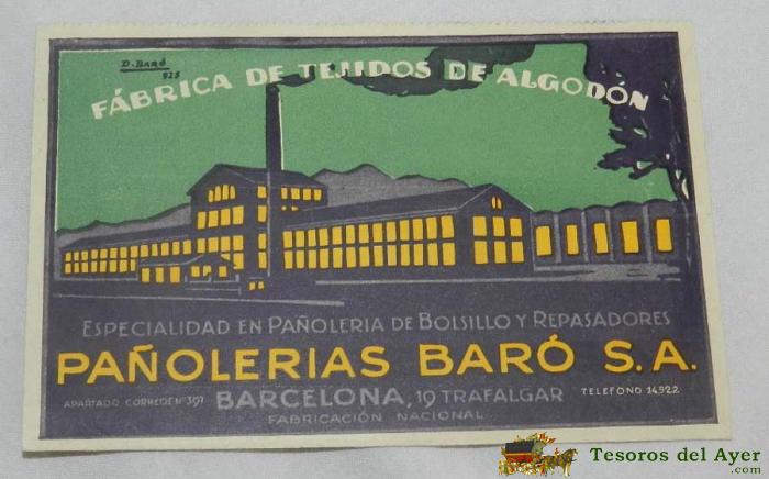 POSTAL DE PUBLICIDAD DE PAÑOLERIAS BARO, FARICA DE TEJIDOS DE ALGODON, BARCELONA, NO CIRCULADA.