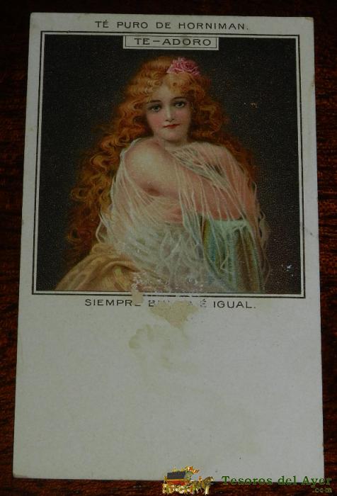 ANTIGUA POSTAL TE PURO DE HORNIMAN, TE-ADORO SIEMPRE BUENO E IGUAL REVERSO SIN DIVIDIR, MIDE 13 X 7,5 CM.