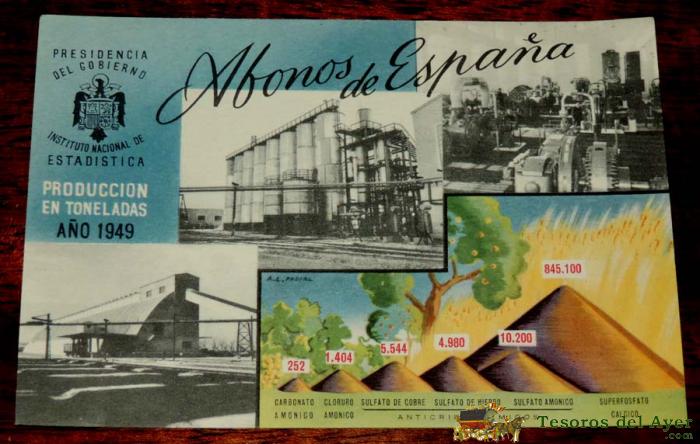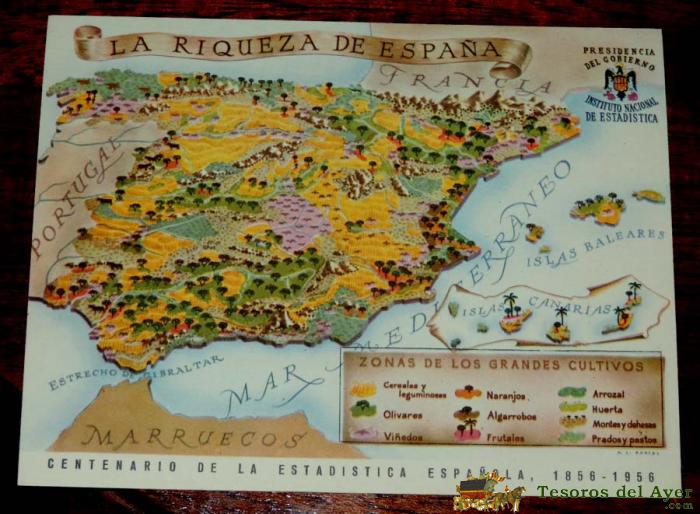 POSTAL DEL INSTITUTO NACIONAL DE ESTADÍSTICA, LA RIQUEZA DE ESPAÑA, AÑO 1956, E. I.G. VALVERDE, NO CIRCULADA.
