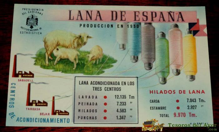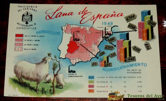 POSTAL DEL INSTITUTO NACIONAL DE ESTADÍSTICA - LANA DE ESPAÑA EN 1950, I.G. VALVERDE, NO CIRCULADA.