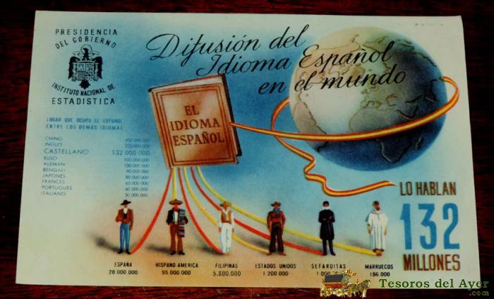 POSTAL DEL INSTITUTO NACIONAL DE ESTADÍSTICA - DIFUSION DEL IDIOMA ESPAÑOL EN EL MUNDO, I.G. VALVERDE, NO CIRCULADA.